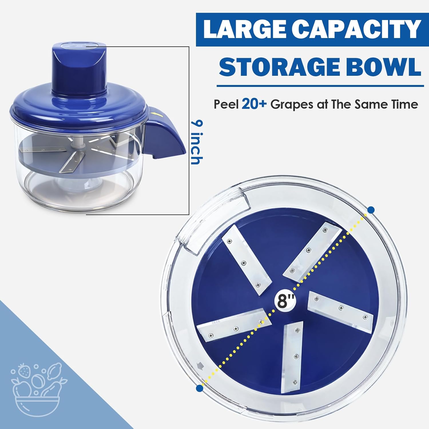 𝗡𝗢𝗧𝗘: Recommended for round or oval fruits weighing no more than 150 grams (5.3 ounces). Garlic must be peeled and separated into cloves beforehand. Read the instructions carefully before use to avoid personal injury and property damage.